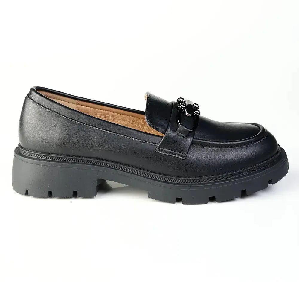 A modern take on a classic loafer, this stylish shoe combines everyday comfort with on-trend design. Featuring a rich brown finish and a bold chunky sole, it offers a smart yet relaxed look thatโs perfect for both workwear and casual outfits. The decorative metal detail adds a refined touch, making it a versatile must-have.