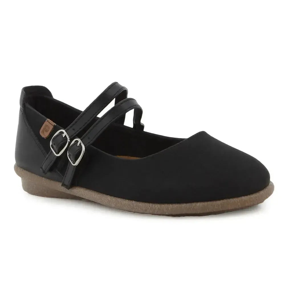 Crafted in a smooth, easy-care upper, the shoe features a closed rounded toe. Two adjustable Mary Jane buckle straps cross the instep, adding a statement detail while ensuring a secure and supportive fit. A subtle back pull tab makes slipping the shoe on effortless and practical for busy days.