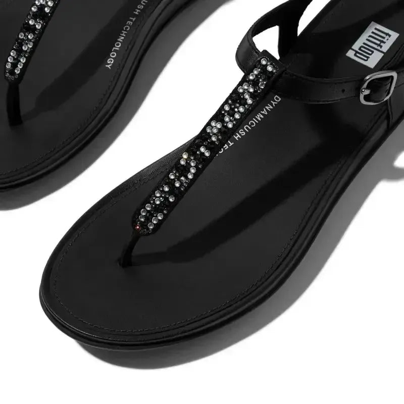 Fit Flop Gracie Crystal-Mix Leather Thong Sandal - All Black