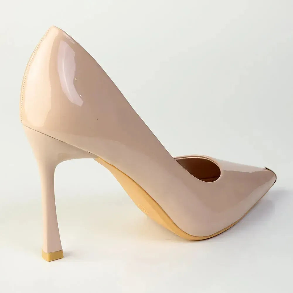 A timeless pointed-toe court heel finished in glossy patent. Designed with a sleek stiletto heel and clean, minimalist lines, this classic pump delivers effortless sophisticationโideal for formal occasions, office wear, or evening styling.
