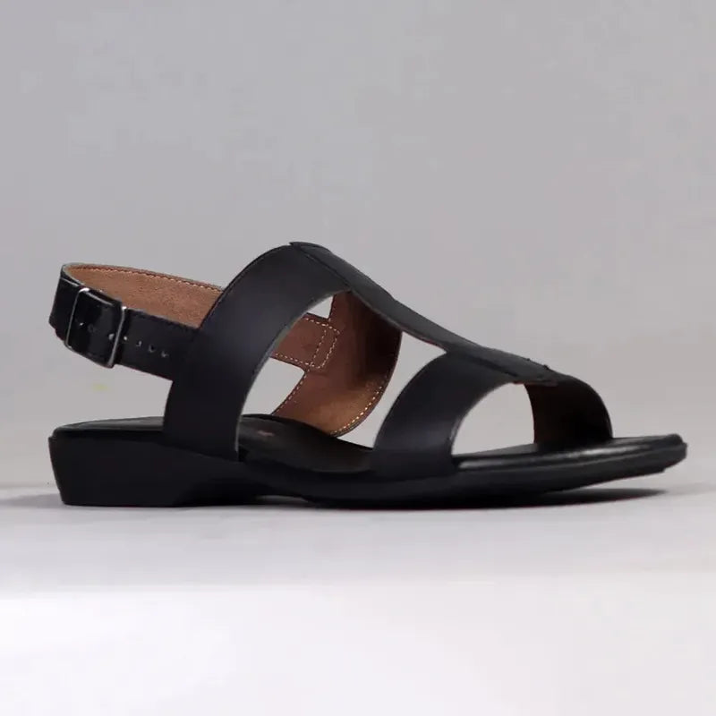 Froggie Ida H-Bar leather Flat Sandal - Black