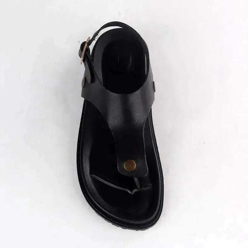 Froggie Tessa Thong With Backstrap Leather Sandal - Black