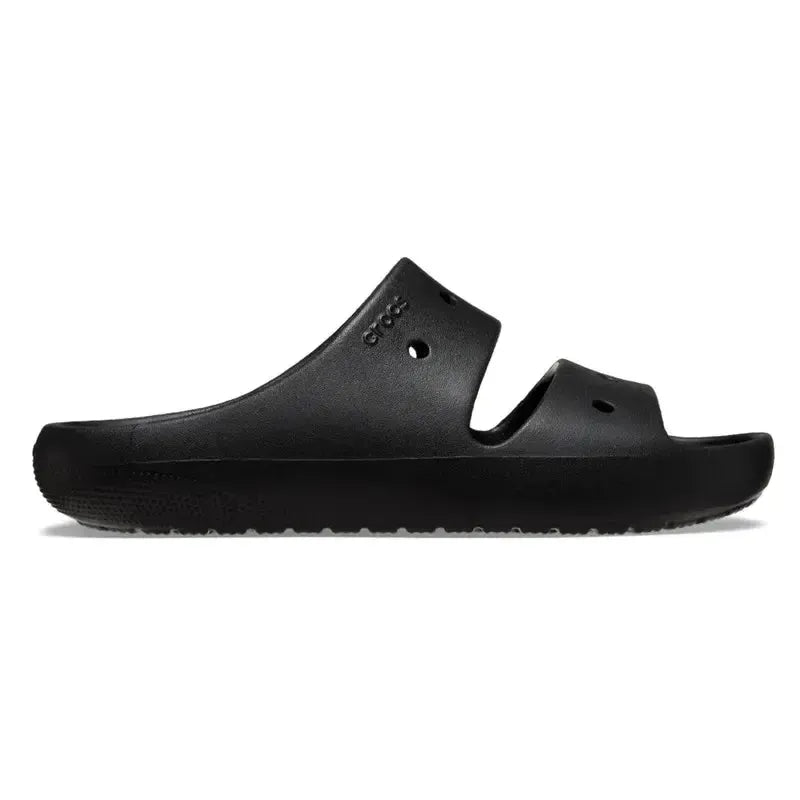 Meet the updated Crocs Classic Sandal V2 in sleek black: a two-strap slide designed for serious comfort. Featuring a deeply cupped Crosliteโข footbed and a relaxed, roomy fit, this sandal delivers Crocsโ signature lightweight, slip-on ease. The water-friendly build, with Jibbitz personalization options, makes it ideal for summer days, travel, or casual wear when you want comfort and style together.ic Crocs, get yours and allow yourself to sink even more into whichever style you choose.