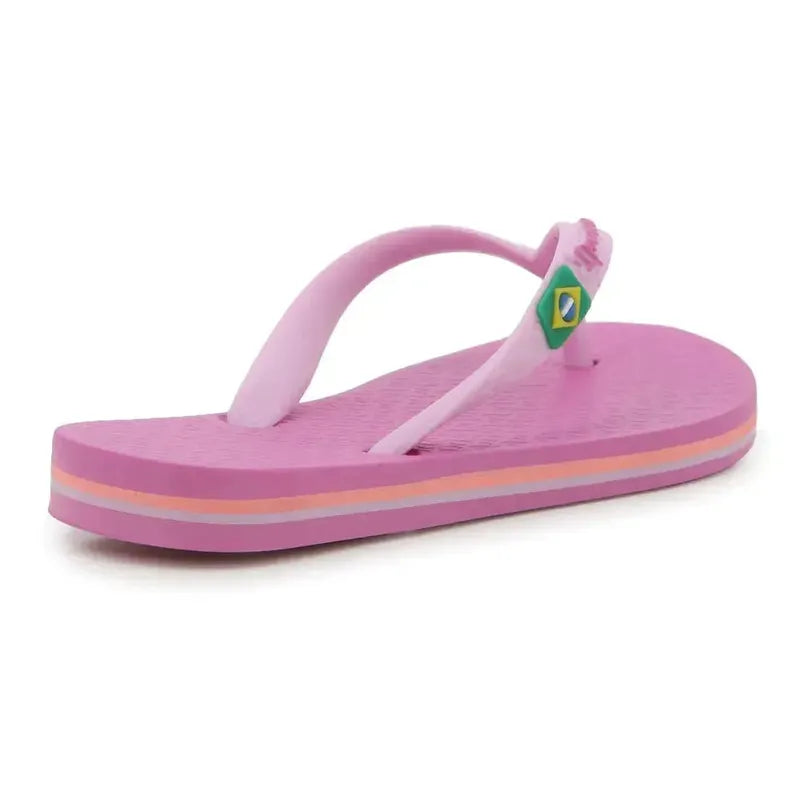 Celebrate Brazilian flair with the Ipanema Kids Oasis Brasil Thong Sandal. Featuring the iconic Brazil flag detail on the strap, this classic thong sandal brings a fun, sporty look to little feet. Made from Ipanemaโs signature soft and flexible PVC, it offers lasting comfort, is water-friendly, and easy to clean , making it perfect for beach days, poolside fun, and everyday wear.