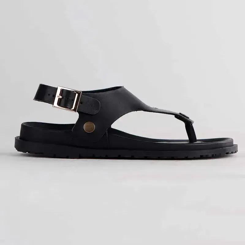 Froggie Tessa Thong With Backstrap Leather Sandal - Black