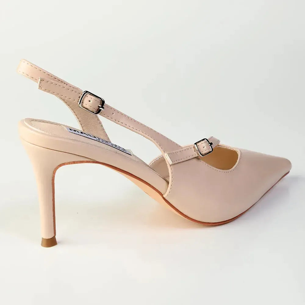 The Madison Odelle slingback is designed to elevate your look with understated elegance. Featuring a sleek V-vamp design and a slim stiletto heel, this nude slingback creates a flattering, leg-lengthening effect while offering a refined finish. Perfect for special occasions or polished everyday wear.