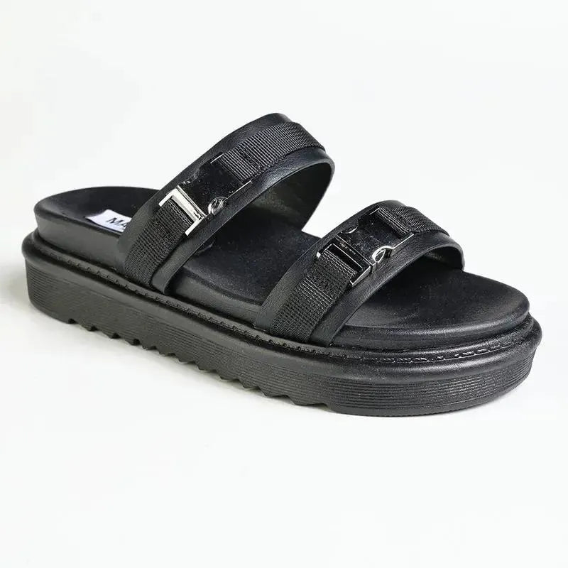 Step into bold comfort with these double-strap flatform sandals. Designed with sleek adjustable buckles and a chunky sole, they bring a modern edge to your casual looks while keeping every step light and comfortable.