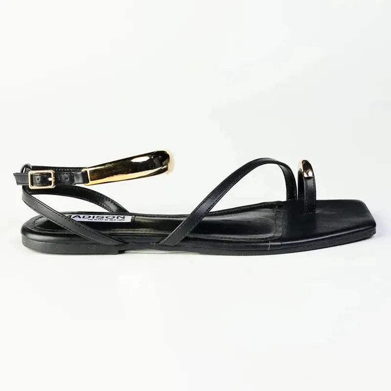 Madison Mirin Toe Loop Ankle Tie Flat Sandal - Black