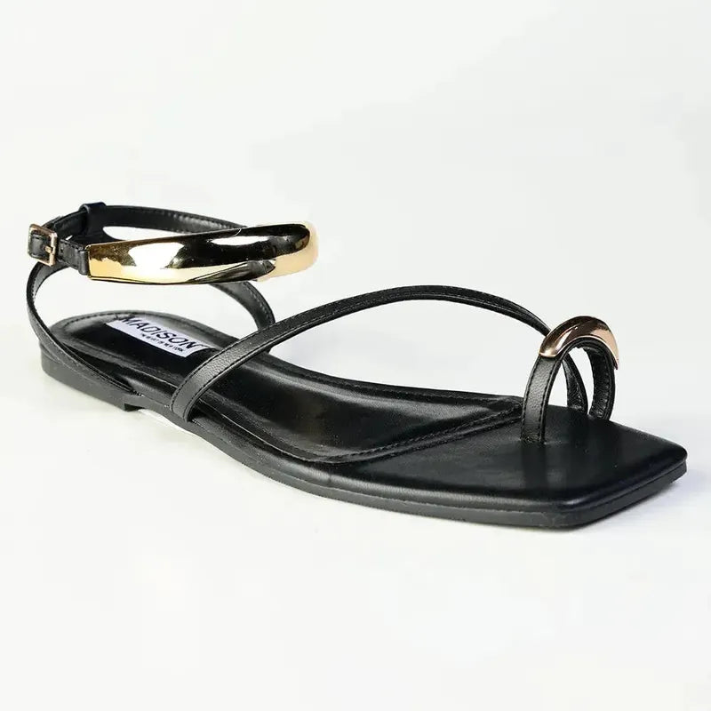 Madison Mirin Toe Loop Ankle Tie Flat Sandal - Black