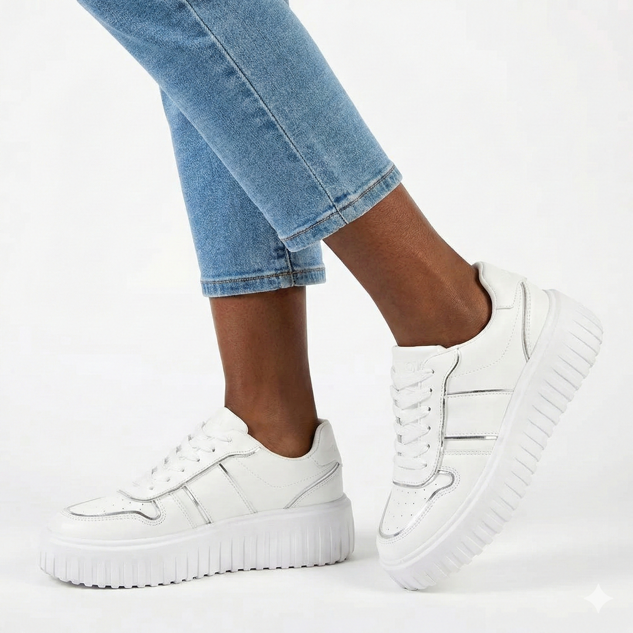 Madison Myra Metalic Inserts Lace Up Sneaker - White / Silver