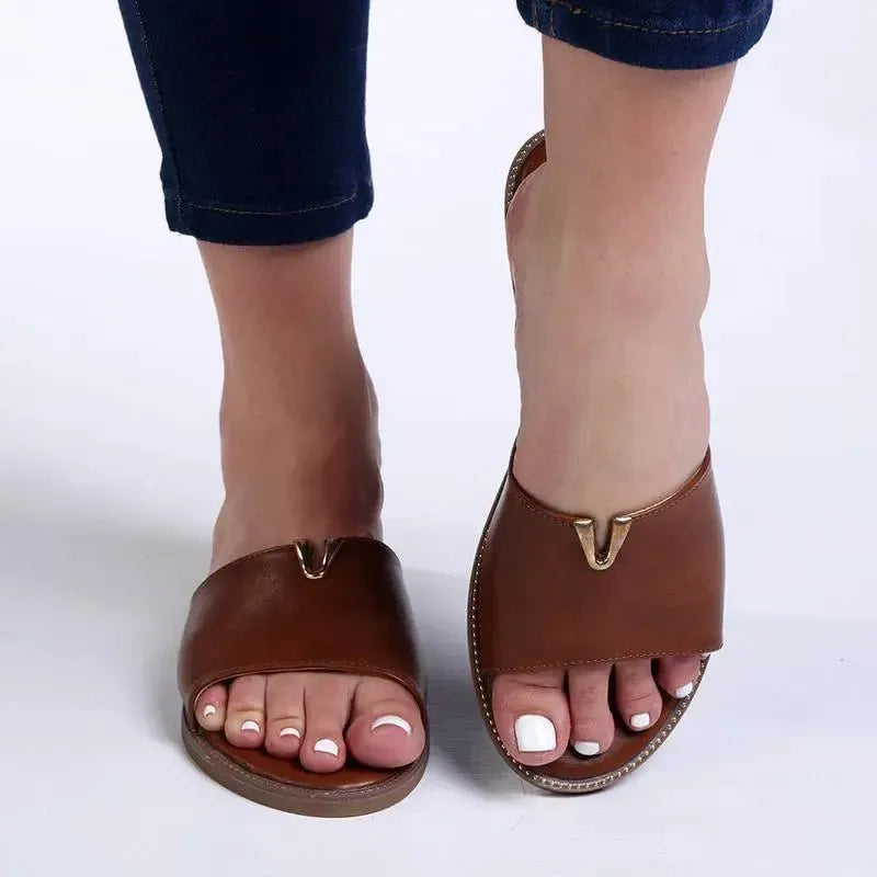 The Alessio Slide Sandal embodies laid-back sophistication, crafted in a smooth tan finish with a sleek metallic accent detail. Its minimalist design offers a timeless look that pairs effortlessly with both casual and refined outfits, making it a versatile staple for every wardrobe.