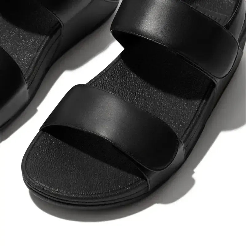 The Lulu Adjustable Leather Back‑Strap Sandal in All Black marries minimalist style with FitFlop’s signature ergonomic support. Featuring fine leather straps, a customizable Velcro back strap, and their patented Microwobbleboard™ midsole, it offers lightweight cushioning and all‑day comfort. Awarded the APMA Seal for foot‑healthy design.