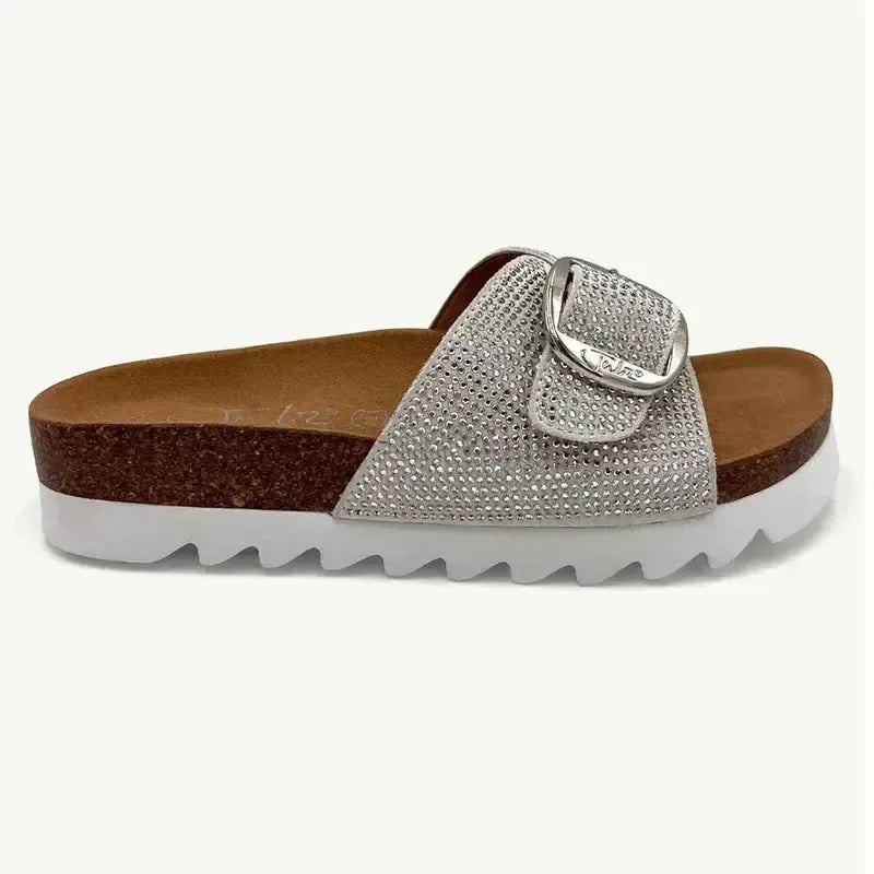The perfect fusion of glamour and comfort. Featuring gleaming diamante-embellished straps, a softly padded insole, and a stable yet stylish heel, this sandal elevates any outfit from day to night. Crafted with attention to detail, it delivers both elegant shine and wearable support for every occasion.