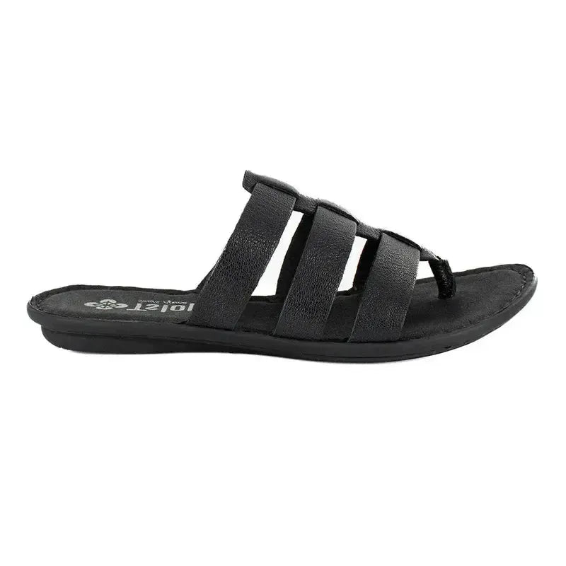 Tsonga Maroua 3 Strap Leather Push In Sandal - Black