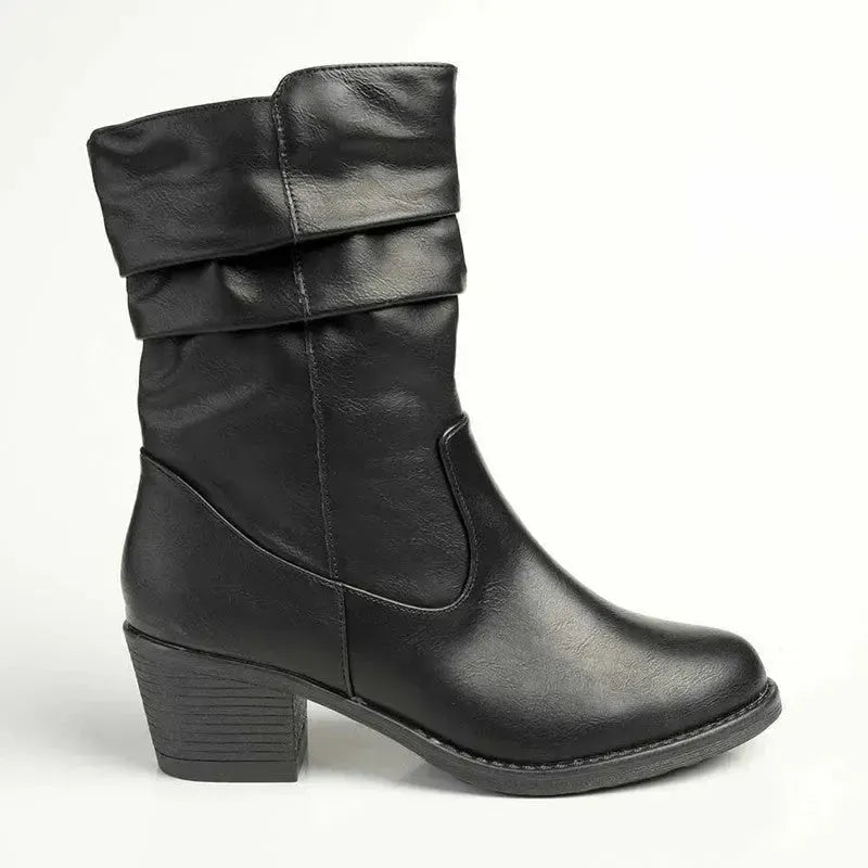 Madison Rouch Block Heel Shaft Boot - Black