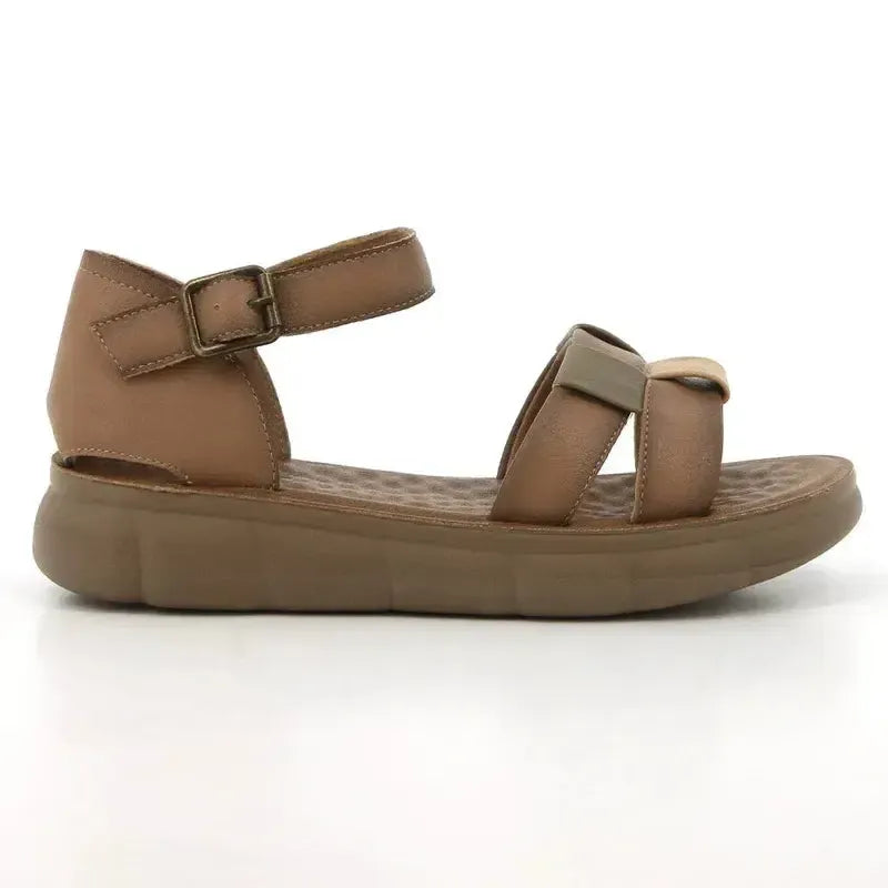The Cara Sandalย is a stylish open sandal combining earthy hues and mixed strap textures for a relaxed yet refined summer statement. Its multi-strap front gives a layered, woven-look effect, while the back strap and buckle/fastener ensure stability. Perfect for casual wear, holidays, or weekend outings where both comfort and style matter.