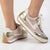 Madison Jullian Lace Up Sneaker With Side Panel- Gold/Beige