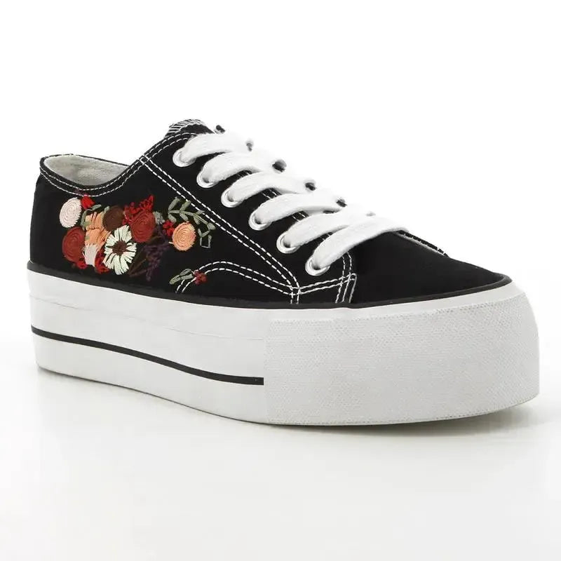 Pierre Cardin Bouquet 3 Flower Lace Up Sneaker - Black