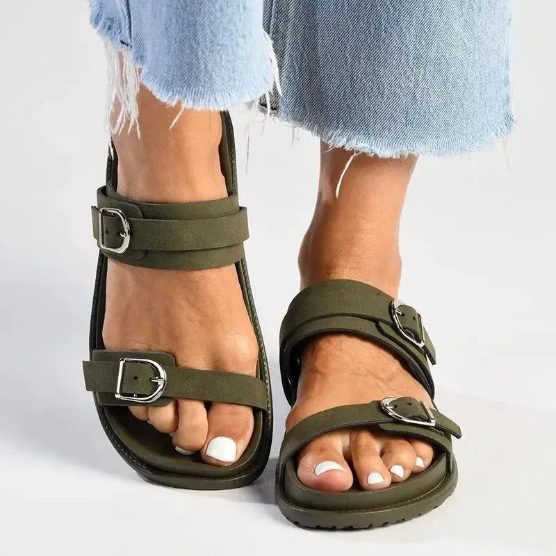 Alessio double buckle push in fashion sandal makes a modern fashion statement. Going to the beach or relaxing at a camp, wear it casually, we are just here to give your feet comfort in style!