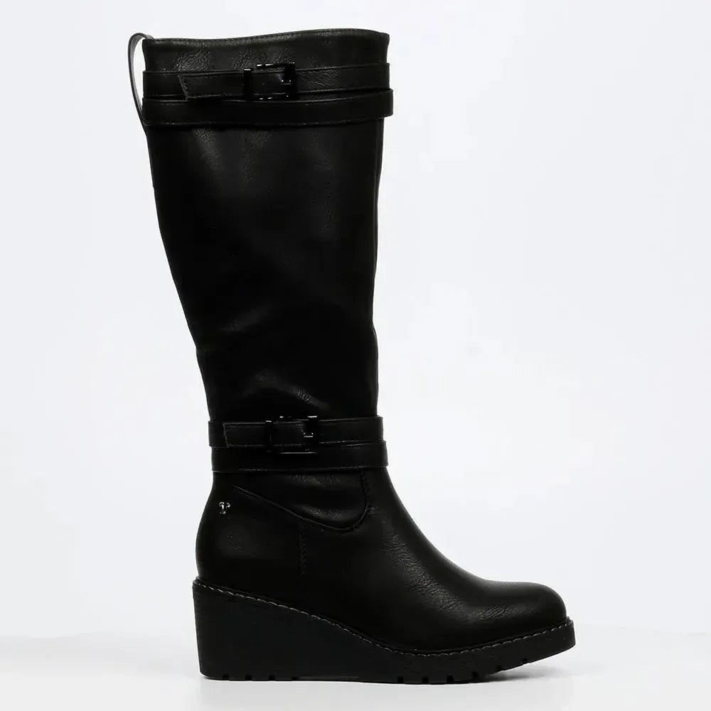 Butterfly Feet Ladies Conway 3 Wedge Long Boot - Black