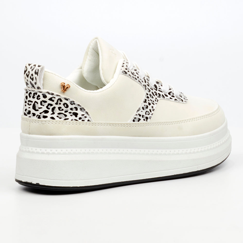Butterfly Feet Senhora 26 Platform Animal Print Sneaker -White