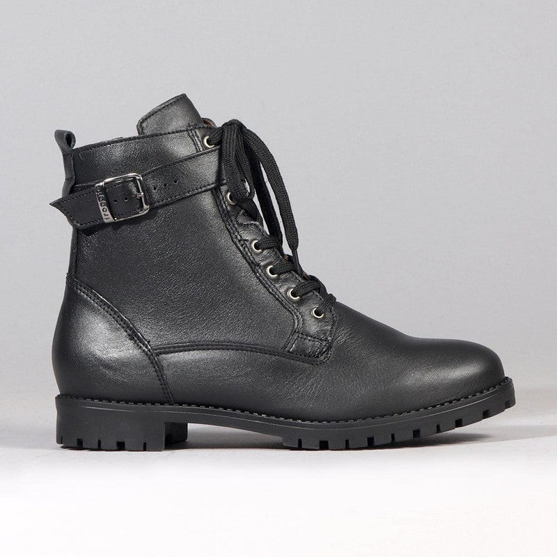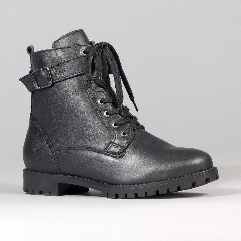 Froggie Pat Leather Lace Up Ankle Boot - Black