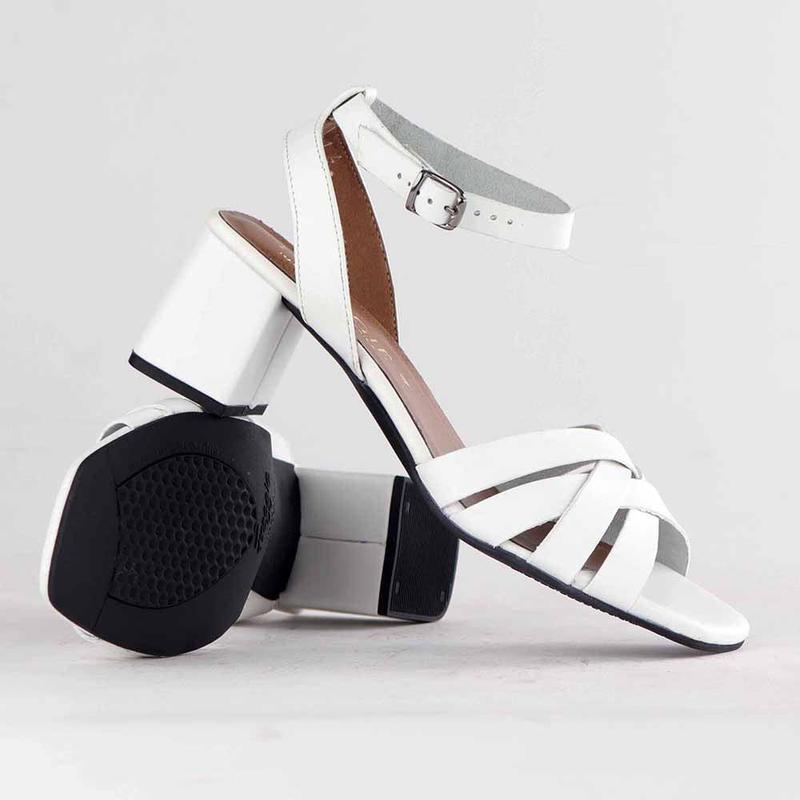 Froggie Pen Leather Crossover Strappy Block Heel - White-Froggie-Buy shoes online