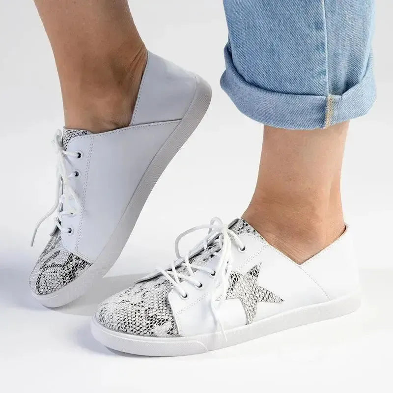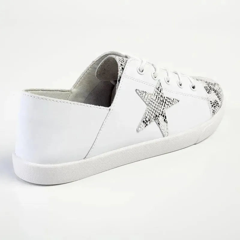 Julz Nicki Leather Sneaker With Star Detail -White/Silver