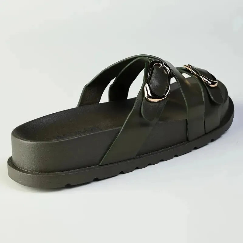 Madison Misty Double Buckle Cross Over Footbed Sandal - Olive