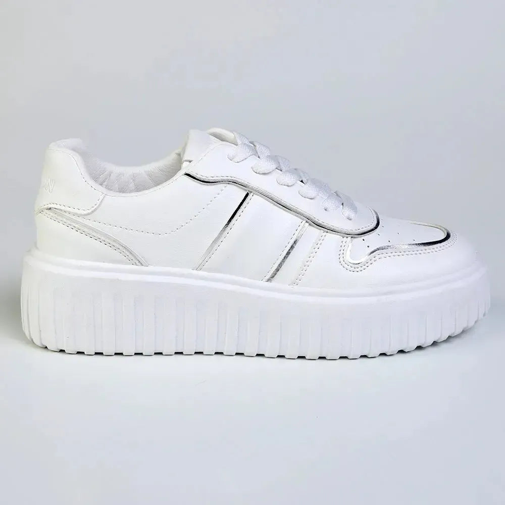 Madison Myra Metalic Inserts Lace Up Sneaker - White / Silver
