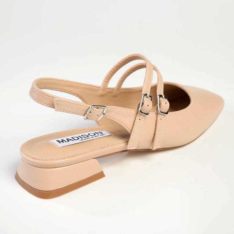 Madison closed toe-low block slingback with buckle straps Baran Round Toe Court Heels, these block heels are a classic in your wardrobe.