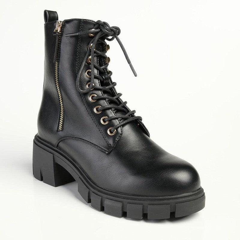 Buy the Madison Fallon Combat Lace up Boot - Black online.ย These are a winter must have for this season, they will go well with any jeans and casual outfit.