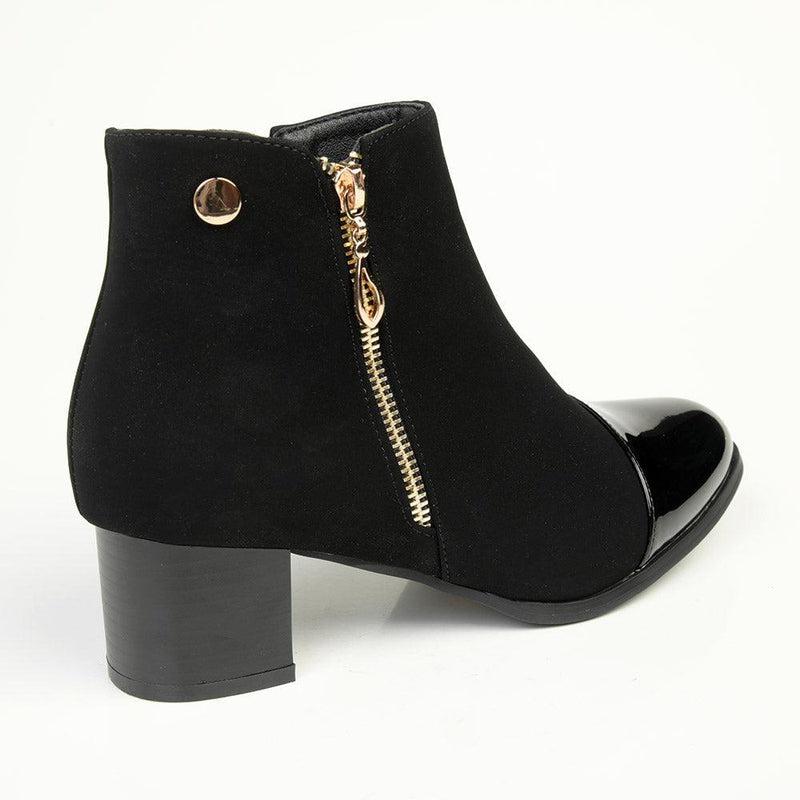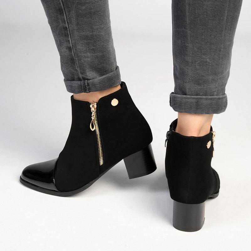 Make a fashion statement with these stunningย Madison side zip ankle booties with a patent toe cap.