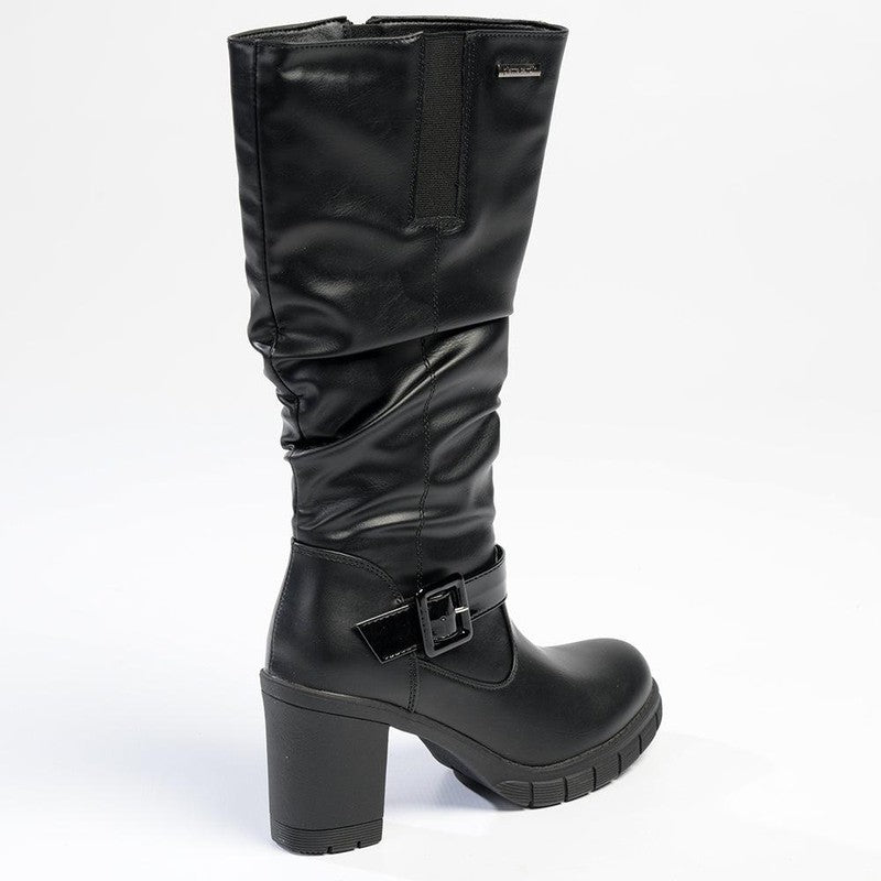 Pierre Cardin Block Heel Side Buckle Boot - Black-Pierre Cardin-Buy shoes online