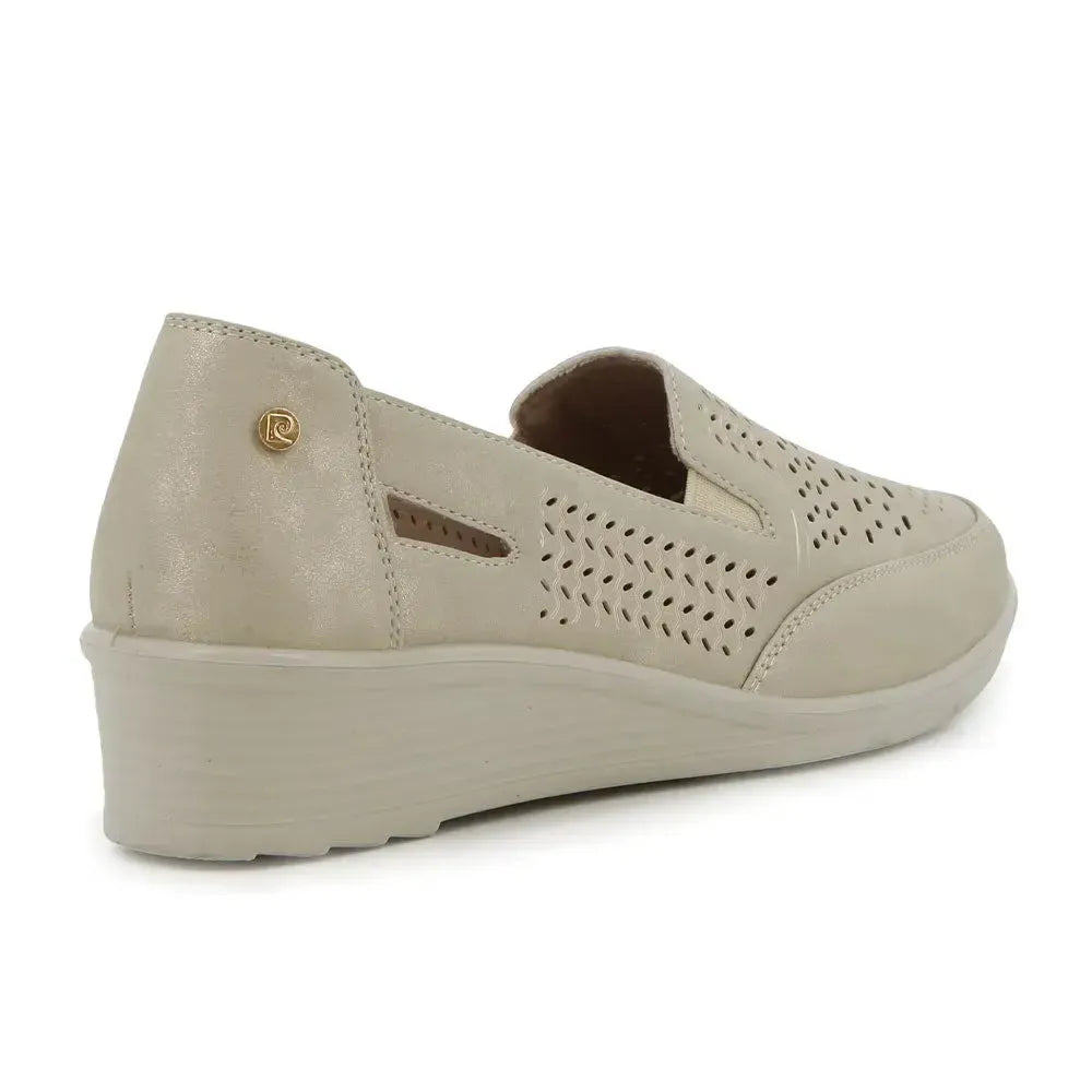A comfortable and stylish closed-toe casual wedge shoe crafted with a soft upper. The design is enhanced with detailed pin-punch perforations, adding subtle texture and a refined finish. Set on a supportive wedge sole, this shoe offers everyday comfort with a polished, casual look that transitions easily from work to weekend wear.