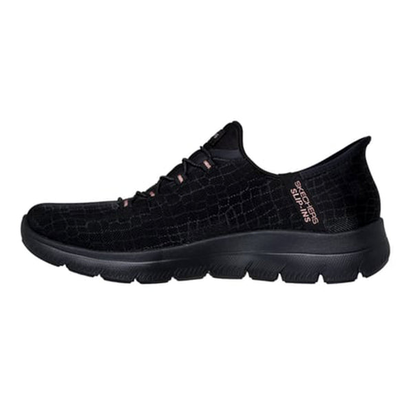Slip into comfort and style with the Skechers Summits sneaker in black and white. Made with breathable mesh fabric, these shoes are perfect for all-day wear. With a slip-in design, they are easy to put on and take off. Step up your fashion game with these versatile sneakers.
