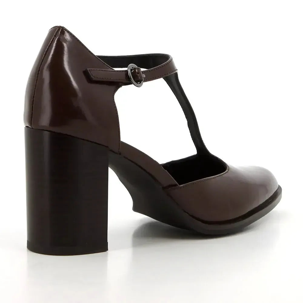 Elegant and modern, this T-strap court shoe combines classic sophistication with contemporary style. The sleek leather upper is polished for a refined finish, while the T-strap with a delicate buckle adds both support and a chic detail. The block heel provides a stable, comfortable lift, making it perfect for all-day wear. Ideal for work, formal occasions, or stylish evenings out, this shoe balances elegance and practicality effortlessly.