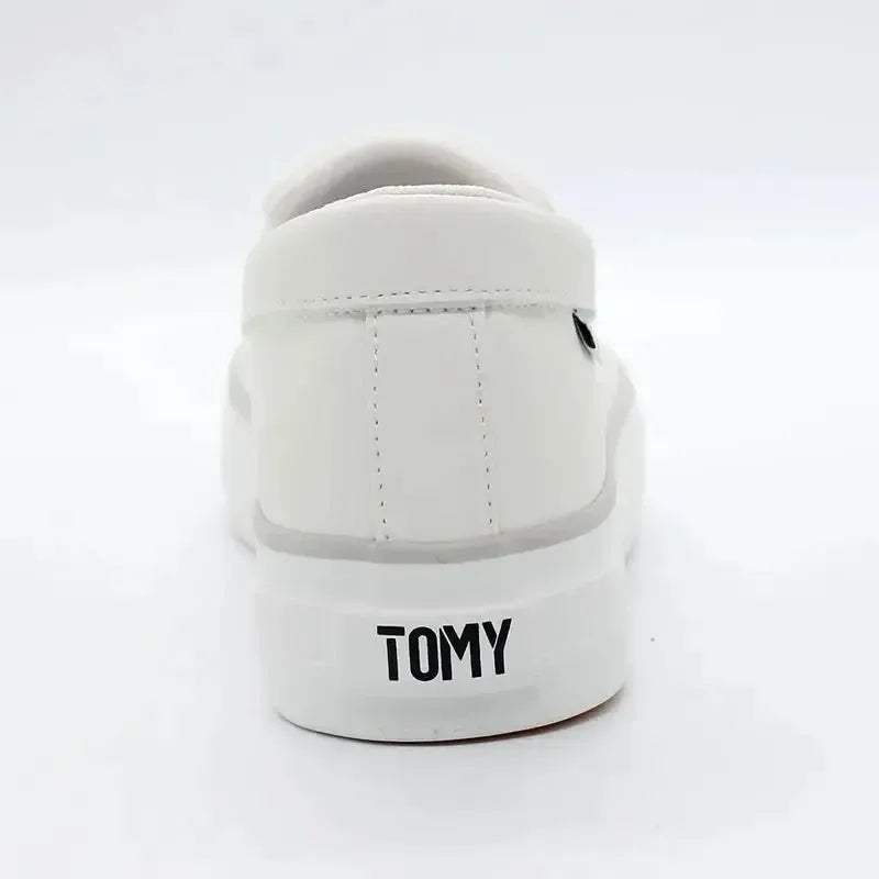 Embrace effortless style with the Tomy Arrow Slip On Sneaker in pristine white. Designed for the modern individual on the go, this sneaker combines comfort with a sleek, minimalist aesthetic. Its slip-on design ensures convenience, while the clean white finish adds a touch of sophistication to any casual ensemble.