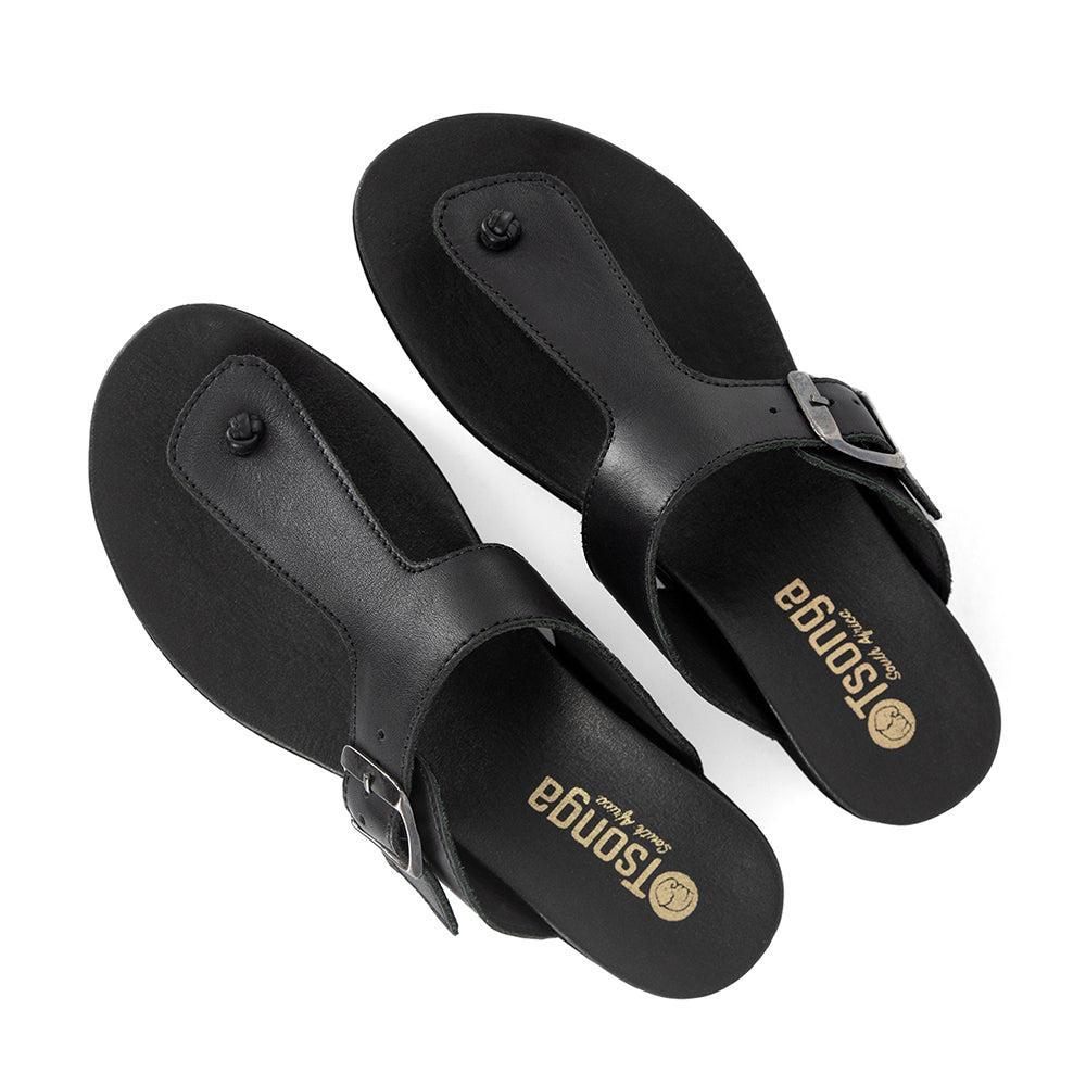Tsonga Olufemi T-Bar Footbed Sandal with Buckle - Black